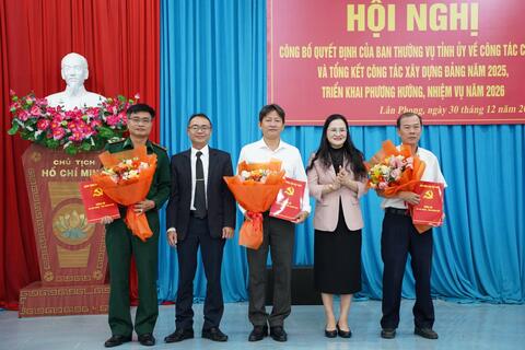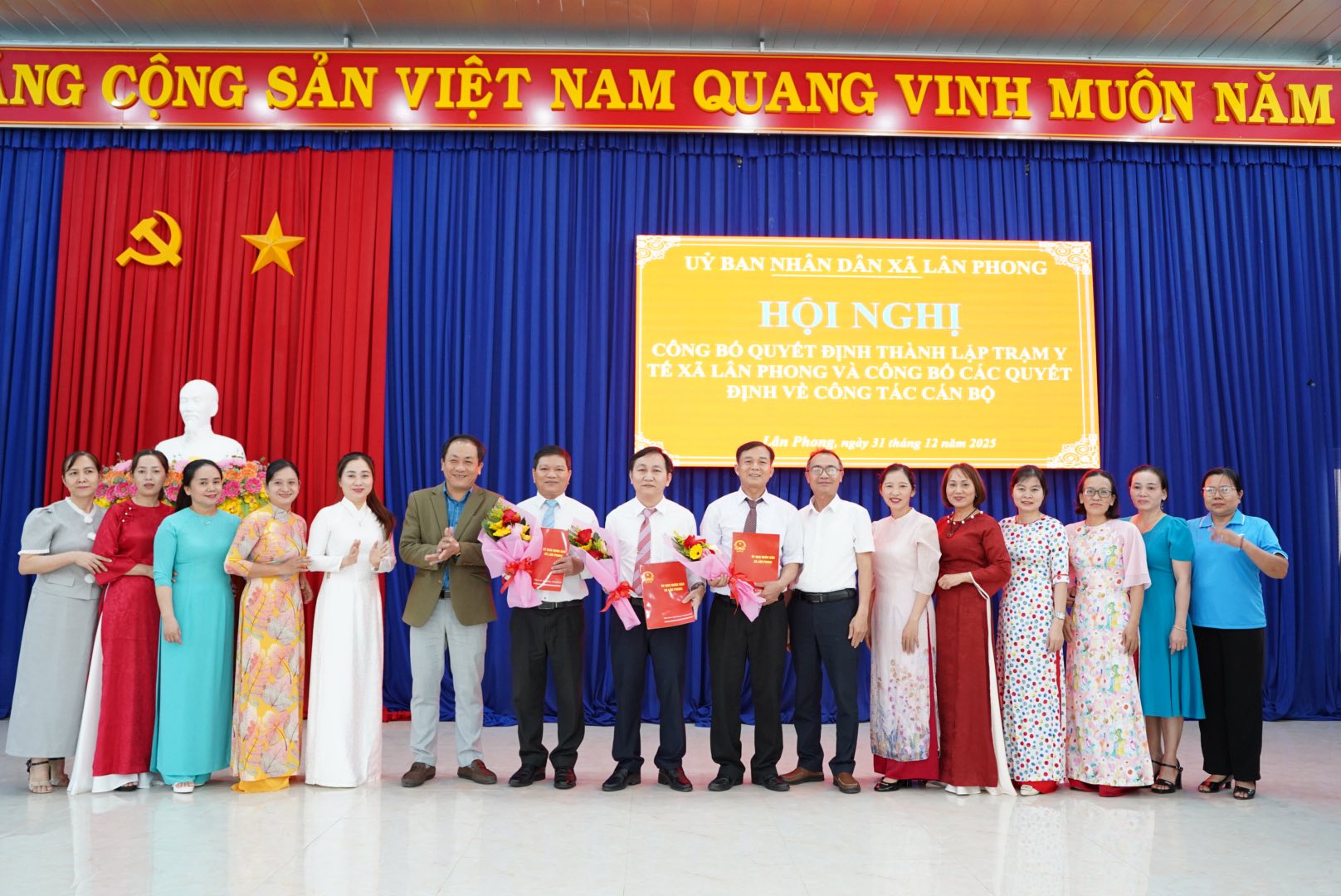 Hội nghị cũng công bố Quyết định bổ nhiệm: Ông Nguyễn Đình Cơ- Trưởng Trạm Y tế Đức Lân giữ chức vụ Giám đốc Trạm Y tế xã Lân Phong; Ông Nguyễn Trai- Trưởng Trạm Y tế xã Đức Phong giữ chức vụ Phó Giám đốc Trạm Y tế xã Lân Phong; Ông Lê Văn Hoàng- Phó trưởng Trạm Y tế xã Đức Phong giữ chức vụ Phó Giám đốc Trạm Y tế xã Lân Phong. Các Quyết định có hiệu lực kể từ ngày 01/01/2026.
