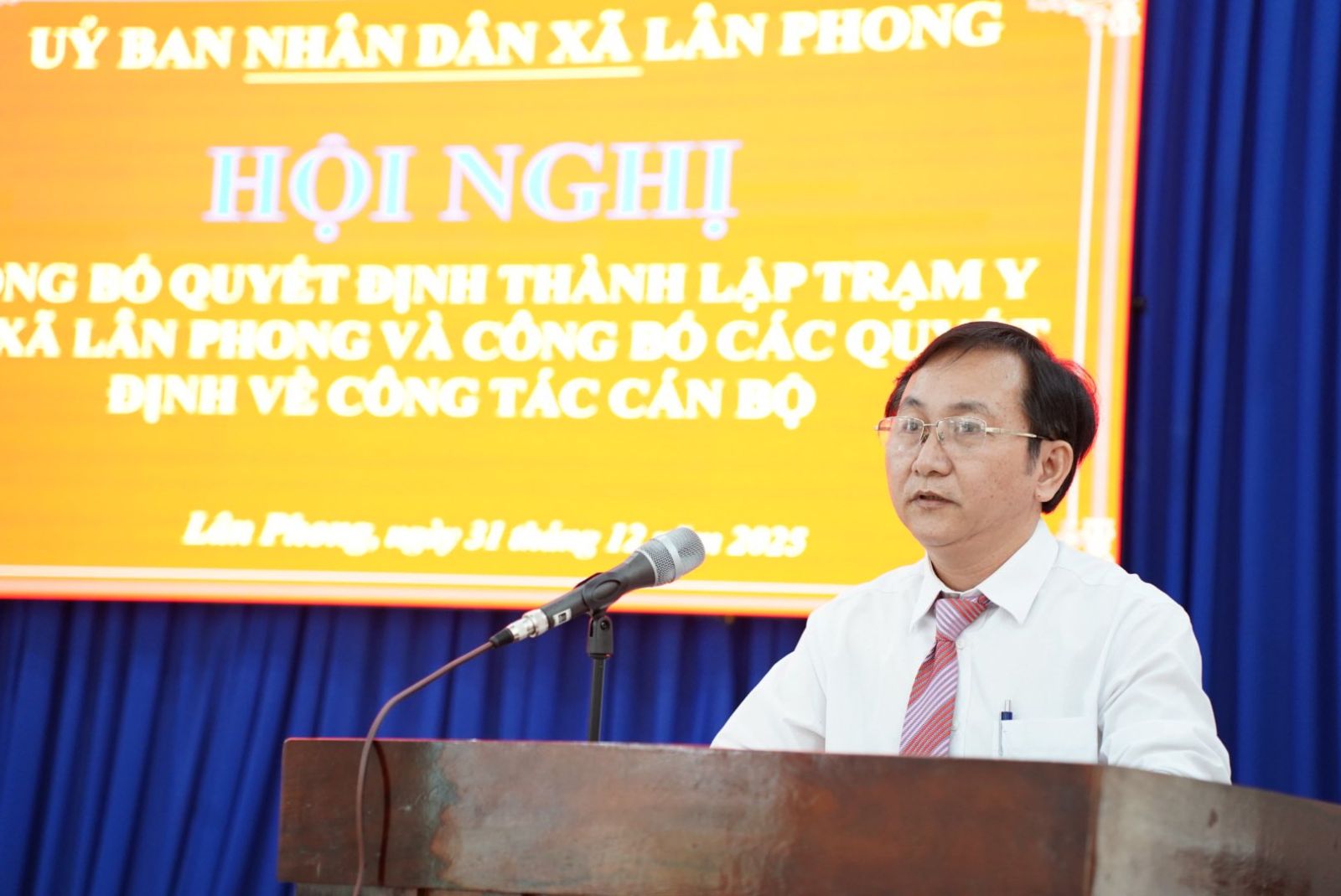 Chiều 31/12/2025, UBND xã Lân Phong tổ chức Hội nghị công bố Quyết định thành lập Trạm Y tế xã Lân Phong và công bố các Quyết định về công tác cán bộ. Đến dự buổi lễ có đồng chí Lê Trung Hiếu – Bí thư Đảng ủy; Nguyễn Thanh Cường- Phó bí thư thường trực, Chủ tịch HĐND xã; Lê Hồng Sa- Phó bí thư, Chủ tịch UBND xã; Đỗ Thị Hạ Huyên- UVBTV, Chủ tịch UBMTTQVN xã; các đồng chí UVBTV, BCH cùng đại diện lãnh đạo các phòng, ban, đơn vị trực thuộc và tập thể cán bộ, viên chức Trạm y tế xã Lân Phong.