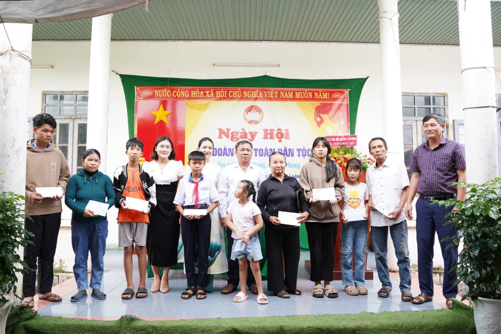 Dịp này, UBMTTQVN xã đã trao tặng 3 phần quà cho hộ có hoàn cảnh khó khăn trong thôn; Ban công tác mặt trận thôn phối hợp với Công ty TNHH MTV Sản xuất và Dịch vụ Phát Lộc và ông Nguyễn Văn Lộc trao tặng 20 phần quà cho hộ nghèo và học sinh có hoàn cảnh khó khăn trong thôn./.