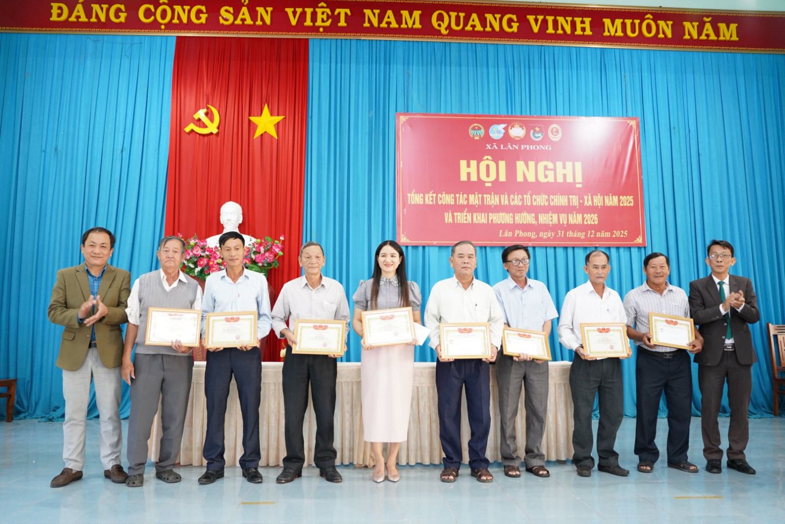 Sáng 31/12/2025, Ủy ban Mặt trận Tổ quốc Việt Nam xã Lân Phong và các tổ chức chính trị – xã hội tổ chức hội nghị tổng kết công tác năm 2025, triển khai nhiệm vụ trọng tâm năm 2026. Tham dự hội nghị có đồng chí Lê Trung Hiếu - Bí thư Đảng ủy; Lê Hồng Sa- Phó bí thư, Chủ tịch UBND xã; Mai Tấn Thành- ĐUV, Phó chủ tịch HĐND xã; Đỗ Thị Hạ Huyên- UVBTV, Chủ tịch UBMTTQVN xã.