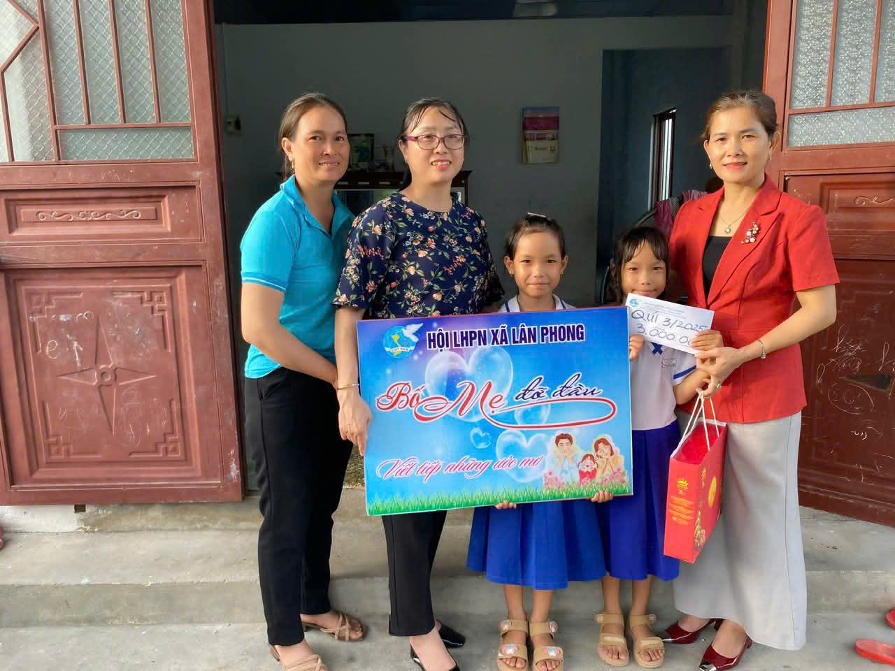 Nhân dịp Tết Trung thu 2025 (15/8 ÂL) Hội LHPN xã Lân Phong đến thăm tặng quà 02 cháu, thay mặt Bố Đạo và Mẹ Thảo trao đỡ đầu quý III/ 2025 với số tiền 3.000.000đồng cho 02 cháu.