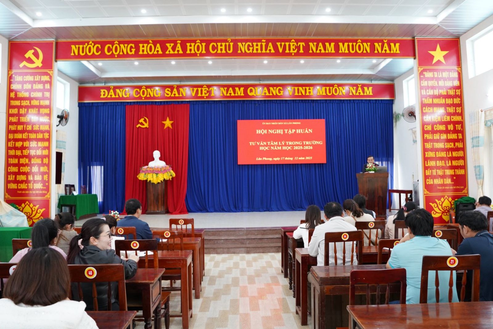 Chiều 17/12, UBND xã Lân Phong tổ chức hội nghị tập huấn tư vấn tâm lý trong trường học năm học 2025-2026 cho cán bộ quản lý và giáo viên phụ trách tư vấn tâm lý trong trường học trên địa bàn xã.